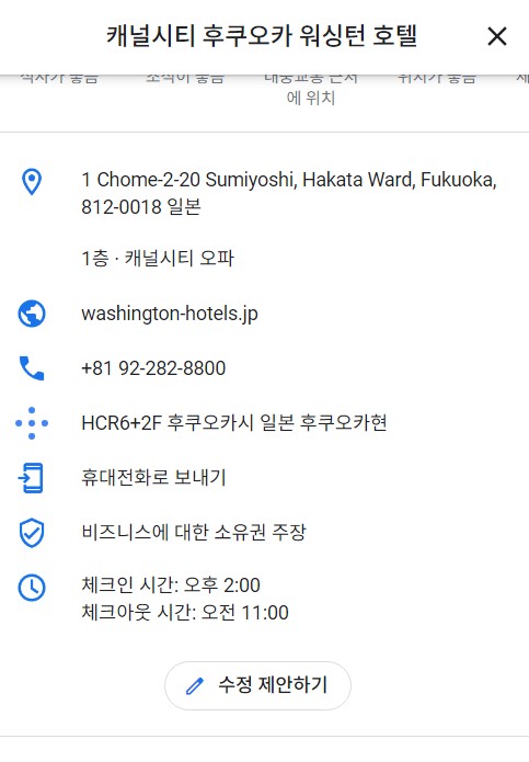 예를 들어 캐널시티 후쿠오카 워싱턴 호텔을 살펴보도록 하겠습니다.