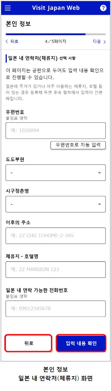 비지트 재팬 웹 주소를 입력시 우편번호를 입력하면 쉽게 등록할 수가 있습니다.